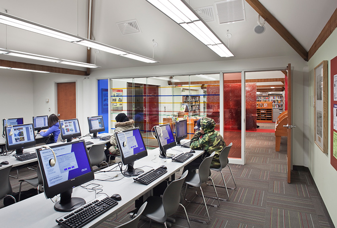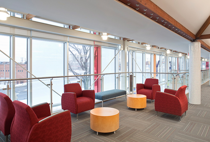 Of Toronto Public Library's 99 branches, Cedarbrae District Library is the third busiest library building in the library system. The original building was designed in 1966 and had become a run-down repository for books. The existing library was no longer capable of catering to the evolving needs of its community. The redesign involved the complete interior renovation of the building and a 4,400sqft addition.